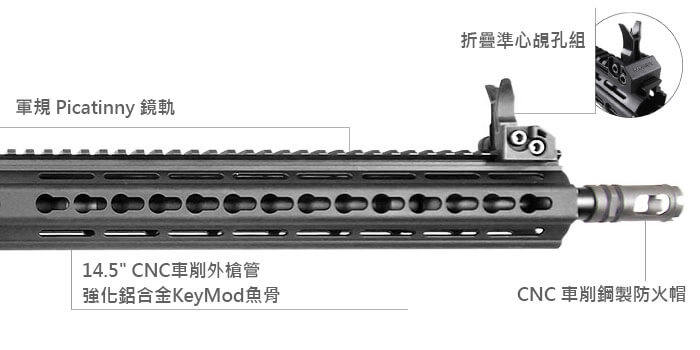 軍規 Picatinny 鏡軌, 強化鋁合金KeyMod魚骨。