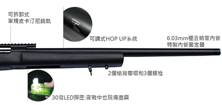 規格介紹:摩帝企業-HOP可調式空氣狙擊槍MOD24 USR150 (黑色);生存遊戲狙擊槍,MWS改裝,MWS套件,MWS強化,生存遊戲電動槍,生存遊戲瓦斯槍