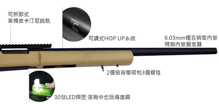 規格介紹:摩帝企業-HOP可調式空氣狙擊槍MOD24 USR150 (沙色);生存遊戲狙擊槍,MWS改裝,MWS套件,MWS強化,生存遊戲電動槍,生存遊戲瓦斯槍